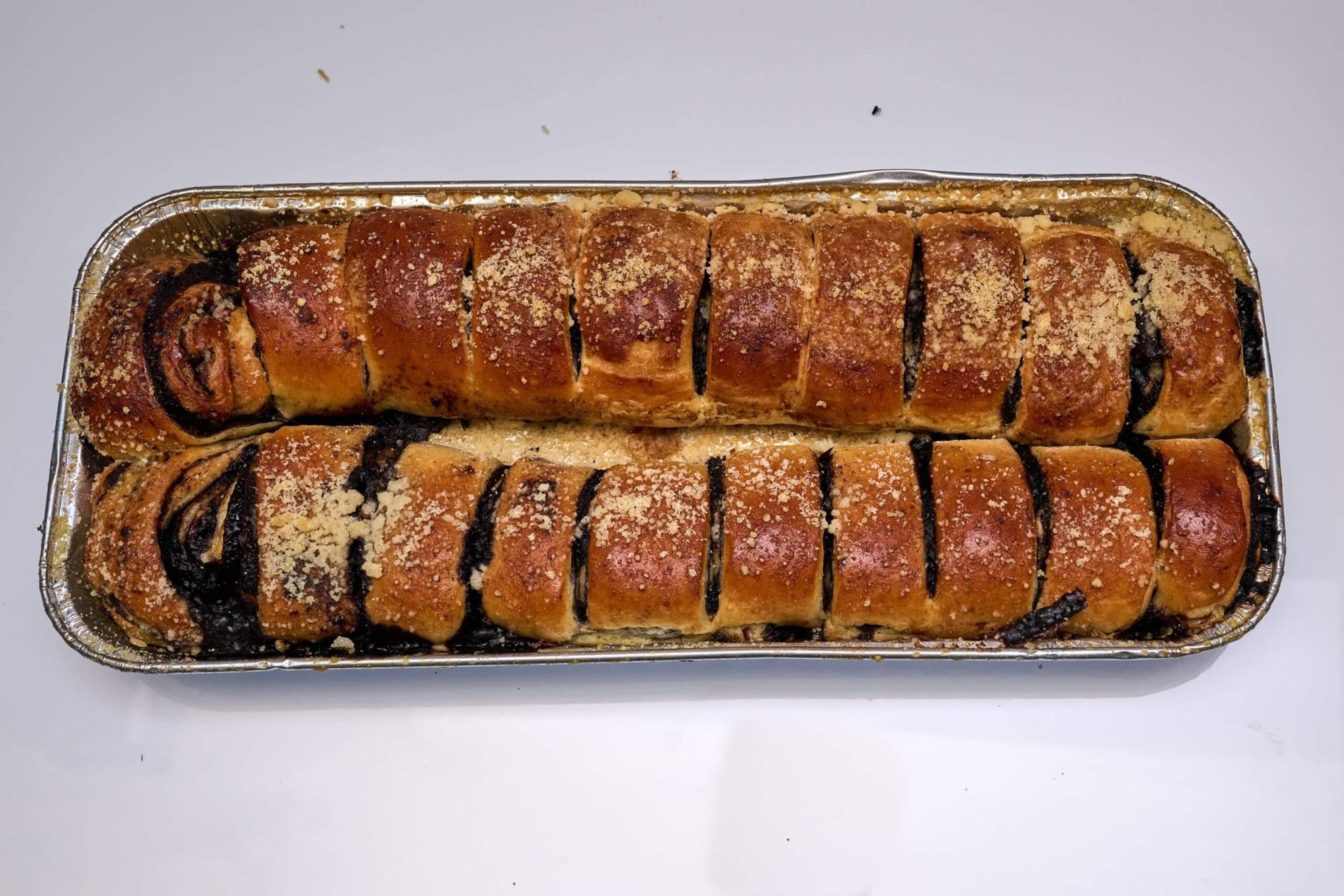 Handmade from scratch, this pastry dough has a beautiful rich chocolate filling.