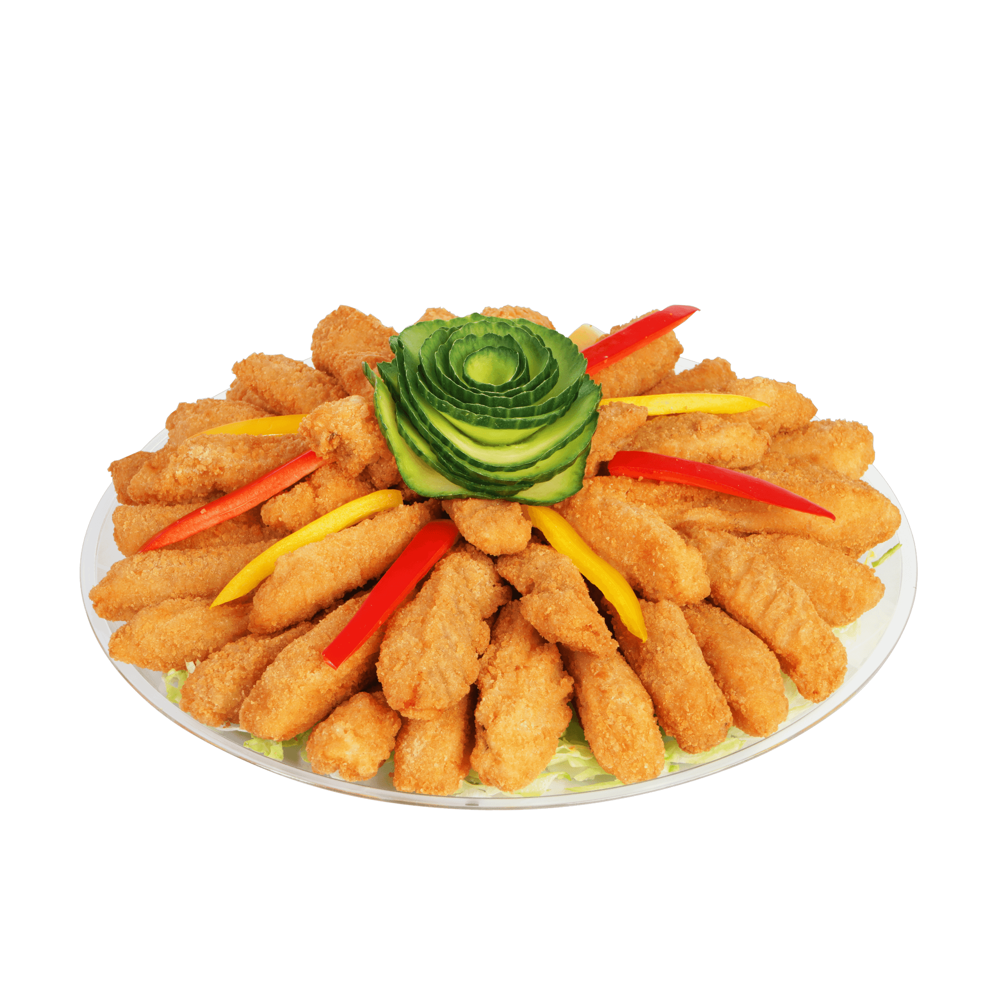 Platter of crispy haddock goujons fried to perfection for beautiful golden finish.
